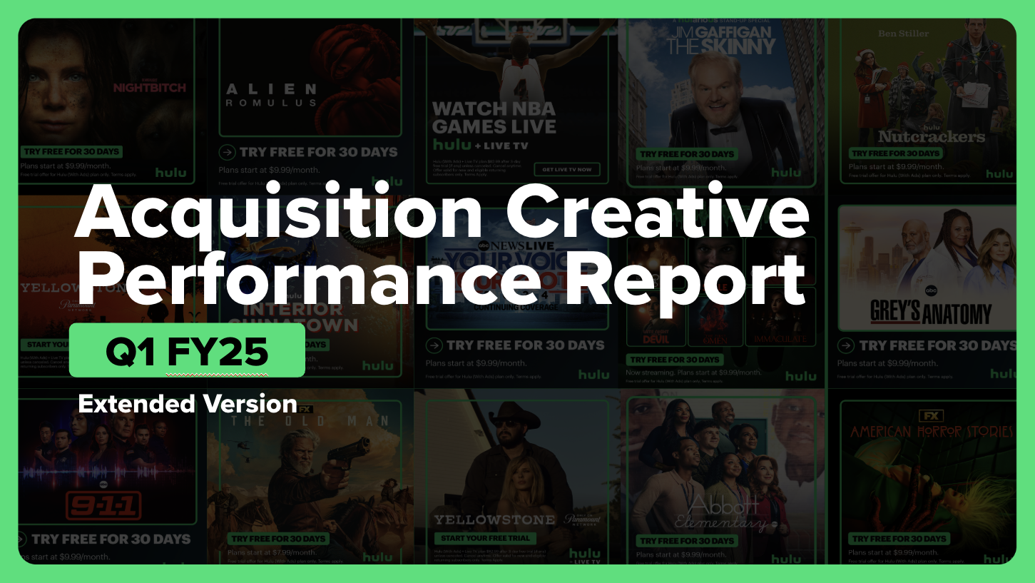 Hulu has been a constant brand I have worked on throughout my 4 years at Decoded, oscillating between design and digital production. My work ranged from paid social/media content (Meta, Snap, Roku, Amazon Devices, and more), to internal presentations and occasional creative explorations with the Hulu design team. This is a small selection from thousands of assets produced throught the years. The process often involved a variety of templates, which evolved over time and sometimes adapted for specific events or premium add-ons.