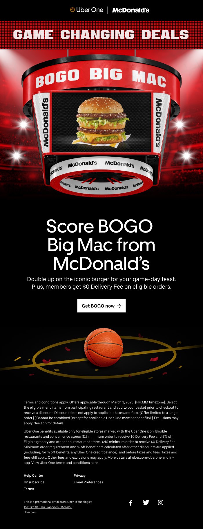 Design and production of assets for Uber email campaigns. As a production designer on these projects, I had a variety of tasks, including: editing product images provided by merchants to fit within production templates; laying out a static version of emails on Figma; exporting all images for email blocks. Additionally, I was tasked with adding brand imagery/offer text to pre-composed After Effects projects, then exporting the animated .gif files for finalized versions of emails.